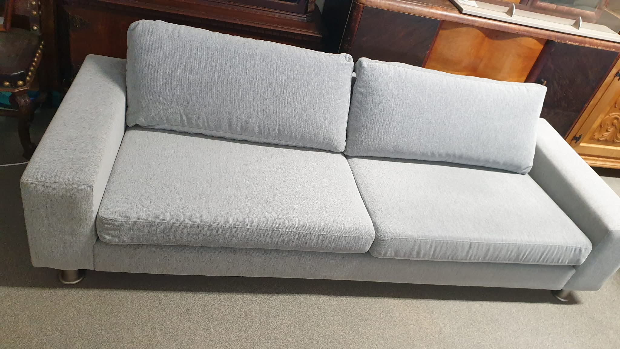Kasutatud, heas korras diivan, mõõtudega: 223 x 83, kõrgus 77 Ühel padjal esineb veidike pleekimist.